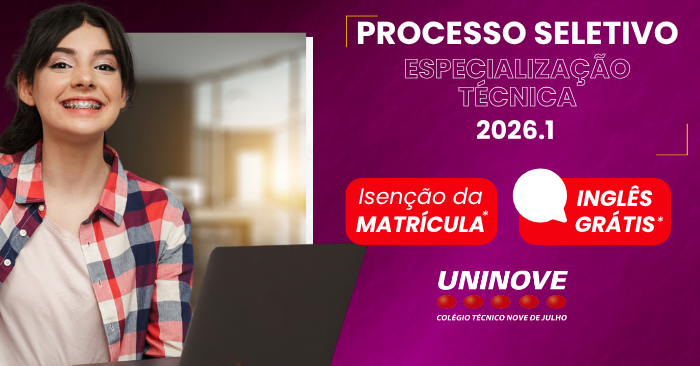 O Colégio Técnico Nove de Julho ajuda você na conquista dos seus sonhos e, agora, está com uma condição superespecial para que você inicie seus estudos no 1º SEMESTRE LETIVO (CIVIL) DE 2026. Entre na página do curso de interesse e confira o valor especial e extraordinário que o Colégio Técnico Nove de Julho está ofertando para o 1º SEMESTRE LETIVO (CIVIL) DE 2026.