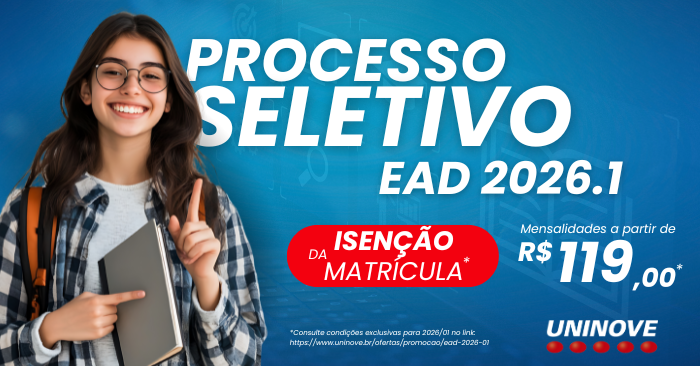 i) O valor da parcela divulgado no site refere-se ao curso ofertado no formato EAD pela UNINOVE, destinado a ingressantes/calouros, matriculados no 1º semestre acadêmico do curso, no 1º semestre letivo (civil) de 2026;